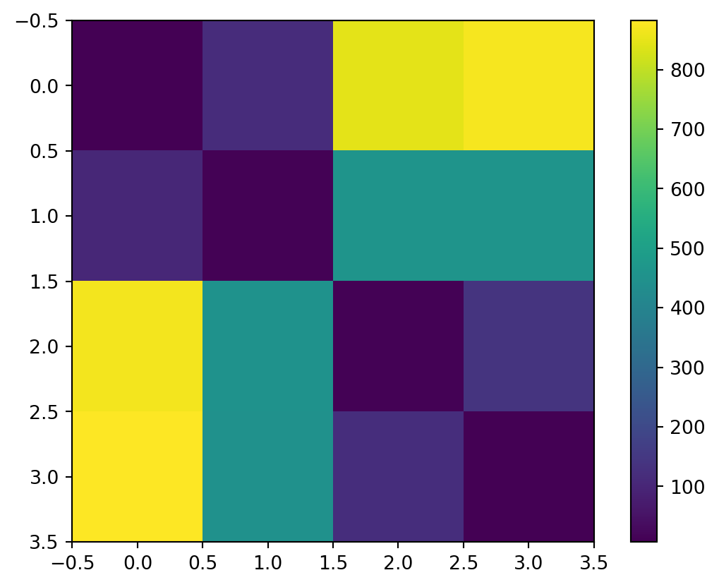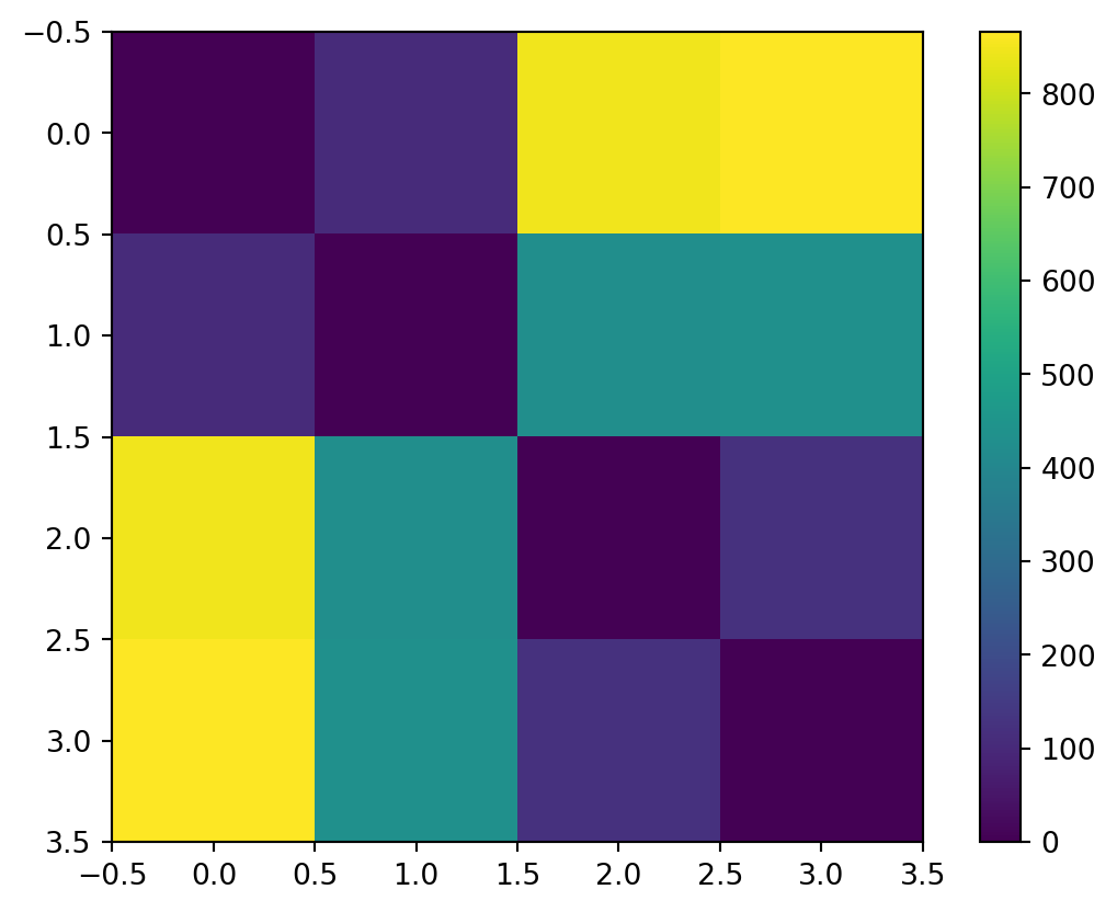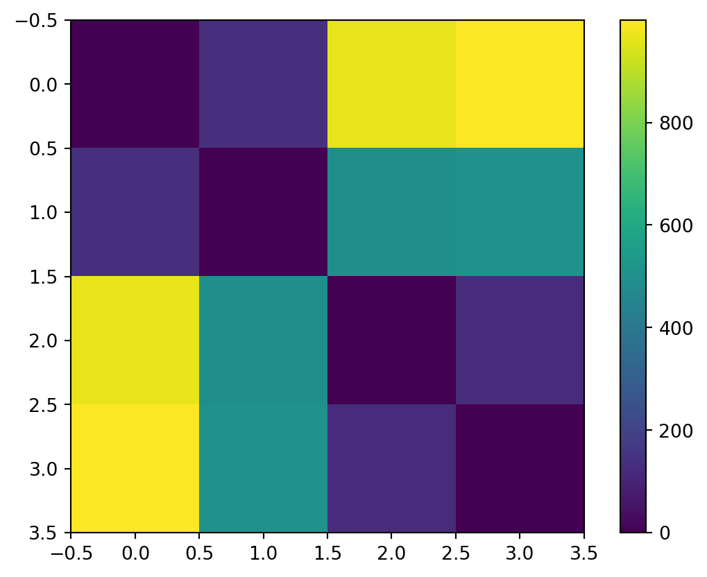 plt.imshow(jnp.sum(jnp.square(params[:, None] - params[None, :]), axis=2))