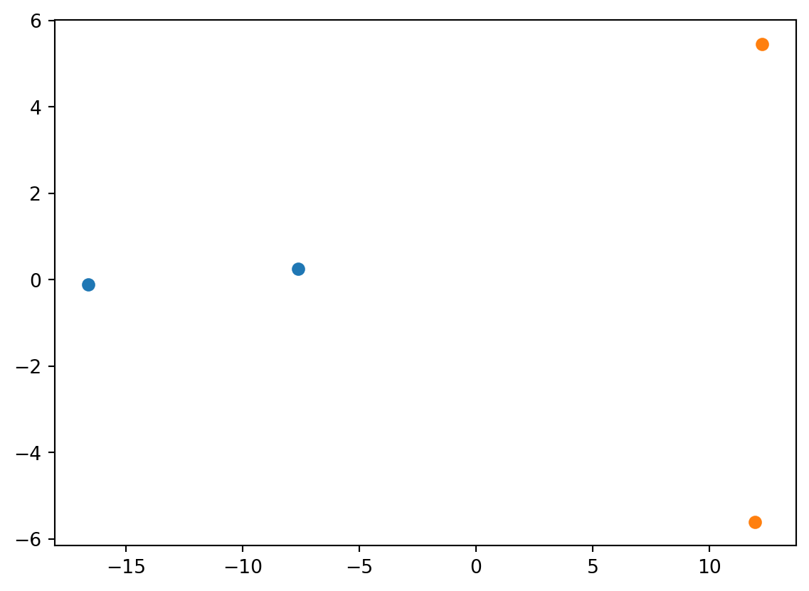 plt.scatter(proj[:2, 0], proj[:2, 1])